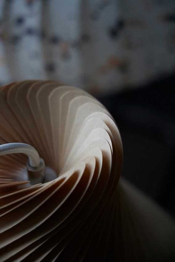 Lampa wykonana jest z brzozy, która z czasem nabiera pięknej patyny, a struktura drewna nieco się zmienia. To podkreśla słoje drewna, czyniąc je nieco jaśniejszymi.