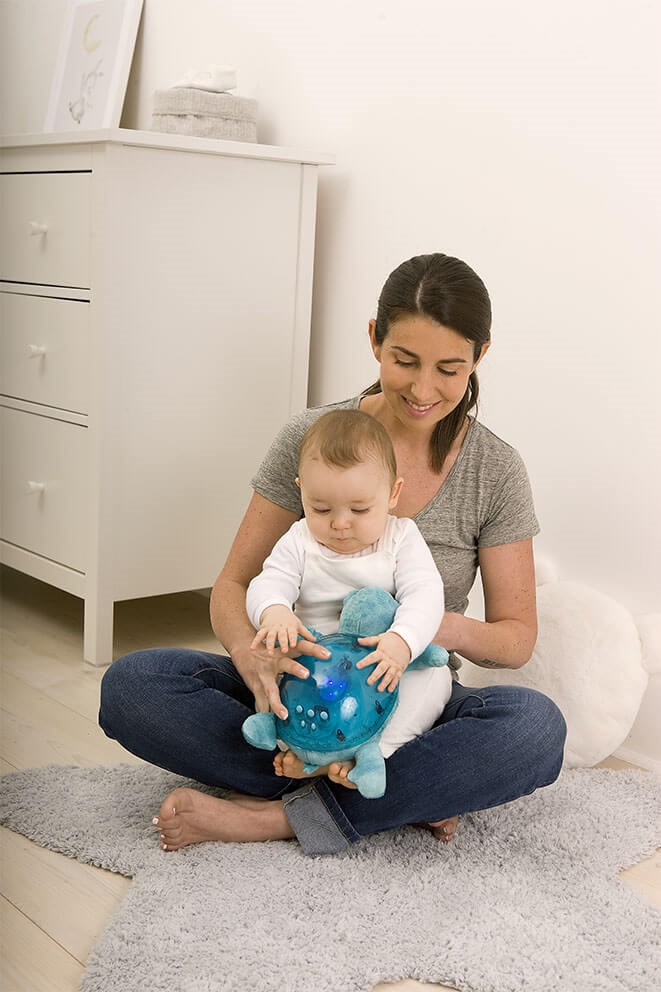 Żółw jest miękkim towarzyszem w ciągu dnia, który nocą zamienia się w magiczne światło nocne. Dodatkowo można wybrać dwie uspokajające melodie lub dźwięk śpiewu wielorybów lub fal morskich, które działają relaksująco. Można regulować jasność w sześciu poziomach, aby stworzyć idealne środowisko do snu. Dodatkowo żółw posiada 23-minutowy timer, który zapewnia całkowitą ciemność i ciszę, gdy dziecko zaśnie. Czujnik płaczu ponownie uruchamia żółwia przy pierwszym płaczu dziecka.