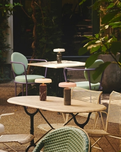 Seria TRIP składa się z lamp z piękną podstawą z marmuru, dmuchanym kloszem ze szkła i detalami z mosiądzu.
