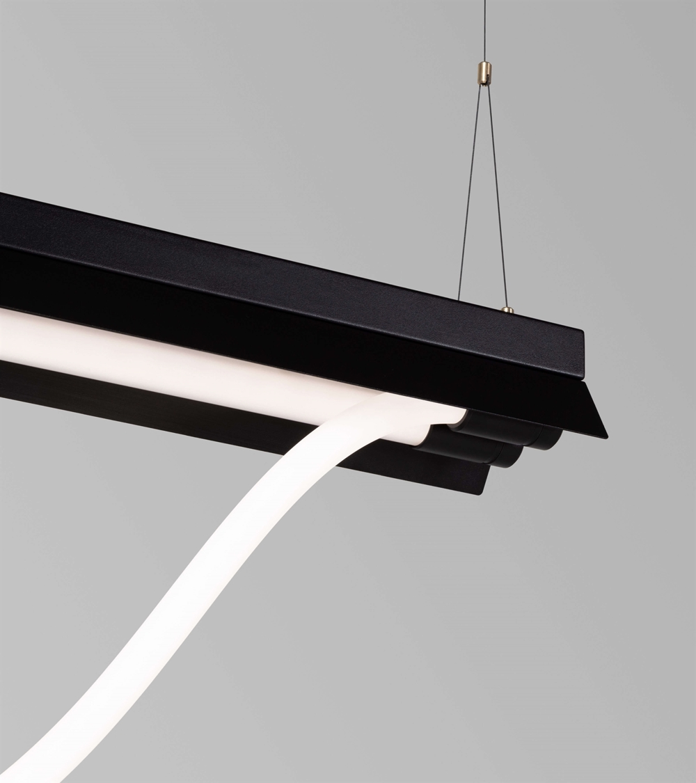 Z lampą wiszącą Tubelight 150 tradycyjny oprawa oświetleniowa do biura lub domu zyskała nowy wymiar dzięki 1,5-metrowej rurze LED z silikonu zawieszonej w łuku pod oprawą. Projekt przekształca coś znajomego w coś fascynującego i ekscytującego w stylu, który jest zarówno minimalistyczny, jak i nowoczesny. Lampa wisząca jest ściemnialna i idealna zarówno do domu, jak i do przestrzeni komercyjnych, takich jak biura i sklepy.