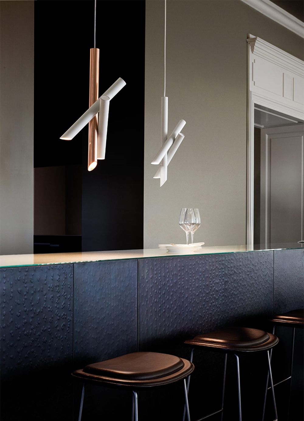 Nemo Tubes 3 lampa wisząca , biały/miedź - zaprojektowana przez Charlesa Kalpakiana.