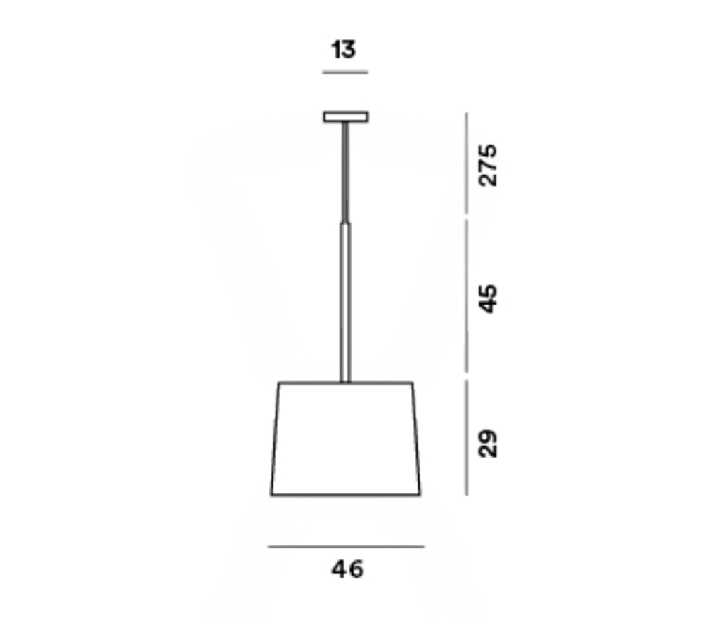 odernistyczna i elegancka lampa wisząca z podstawą z lakierowanego metalu i kloszem z włókna szklanego.