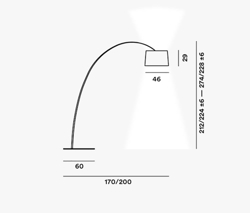 Nowoczesna i elegancka lampa stojąca z podstawą z lakierowanego metalu i kloszem z włókna szklanego. Klosz wyposażony jest w matowy wewnętrzny ekran, który zapewnia przyjemne, nieoślepiające światło.