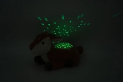 Naciśnięcie na grzbiet jelonka włącza świecące gwiazdy, które pozostają włączone przez 45 minut, po czym automatycznie się wyłączają. Dzieci mogą więc powoli zasypiać w spokoju.
