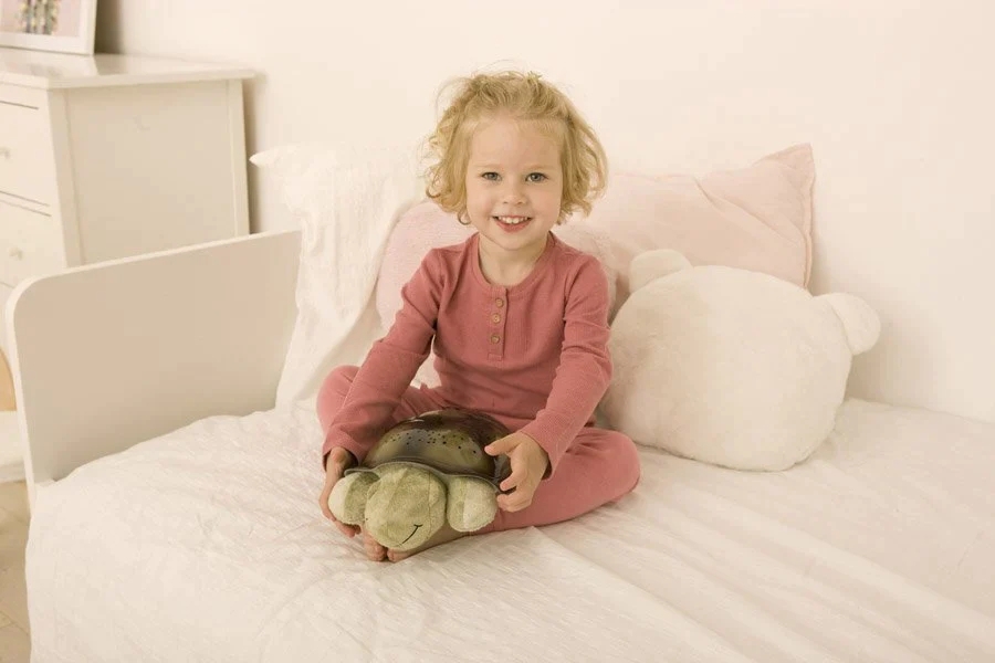 Migoczący Twilight Turtle tworzy przytulną i bezpieczną atmosferę dla każdego dziecka. Żółw jest zawsze gotowy na drzemkę, pomagając dzieciom zasnąć. Daje dzieciom spokojne i relaksujące światło przed snem w formie gwiaździstego nieba, co sprawia, że noc staje się mniej straszna i bardziej zabawna. Gwiaździste niebo można wyświetlić na ścianie lub suficie, wybierając spośród trzech różnych kolorów: zielonego, niebieskiego i bursztynowo-czerwonego. Zielony symbolizuje naturę, niebieski pomaga uspokoić zmysły, a bursztyn tworzy ciepło. Lampa może również emitować dwie różne kojące melodie
