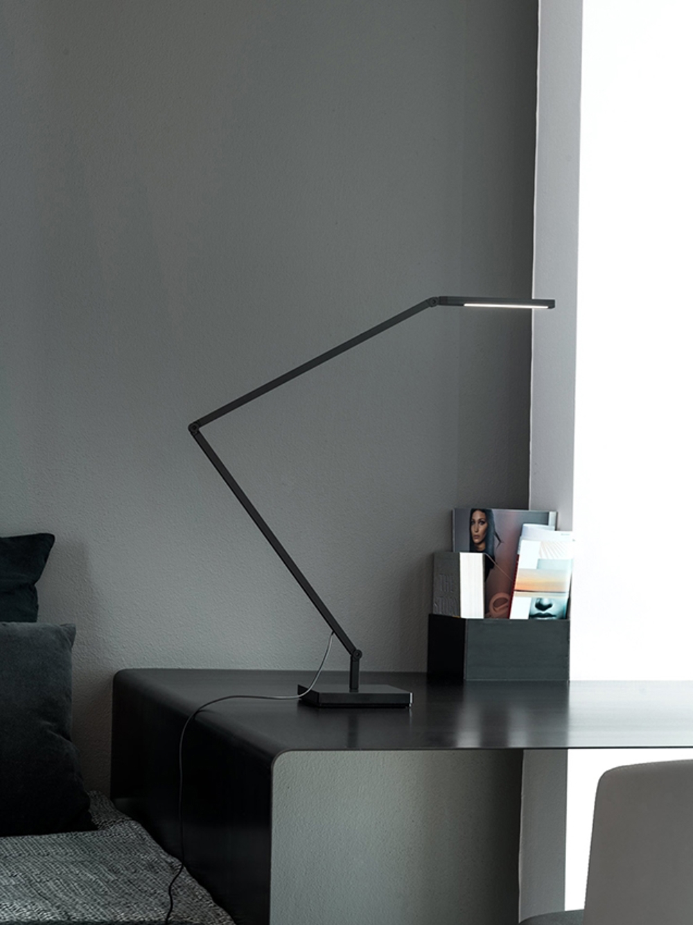 Seria lamp UNTITLED Linear dostępna jest z podstawą stołową, uchwytem ściennym lub klipsem do stołu