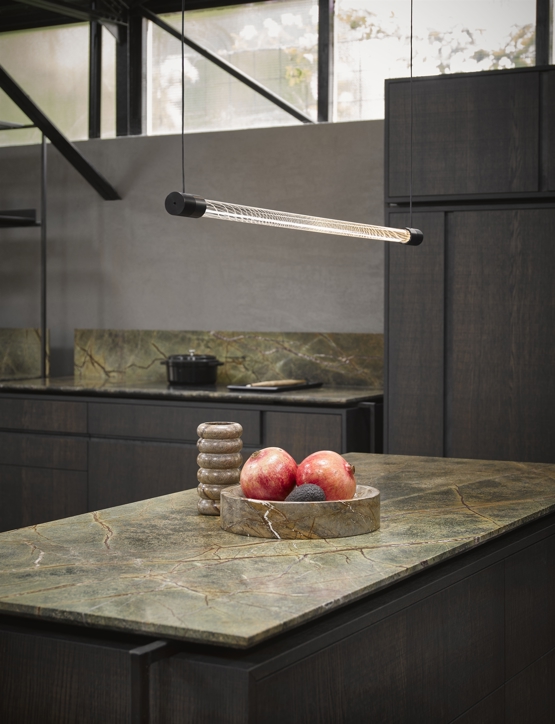 Vapour pendel to piękny kontrast między geometrycznymi a organicznymi formami. Idea projektu pochodzi z fascynacji strukturą i ruchem natury. Vapour to także bardzo elegancka lampa, która zdobi i wypełnia przestrzeń.