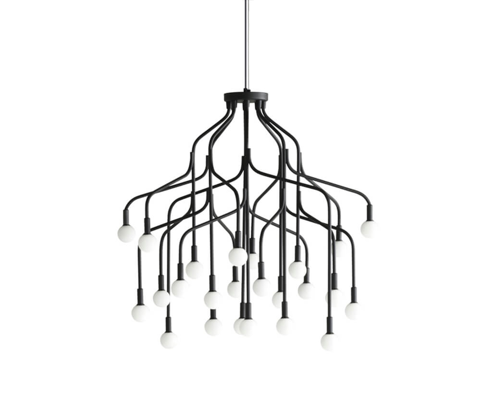 Vekst żyrandol z ramionami przypominającymi gałęzie ma piękny i przyciągający wzrok design, który zapewnia światło skierowane w dół. Lampa wykonana jest z malowanej proszkowo stali i opalowego szkła, dzięki czemu światło jest nieoślepiające i jednolite w pomieszczeniu.