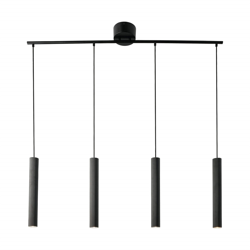 Vico 4-Rail ma minimalistyczny i opływowy design, a dzięki swojej smukłej formie jest kwintesencją skandynawskiej elegancji. Lampa wisząca z czterema ryflowanymi kloszami świetnie sprawdzi się jako oświetlenie nad stołem jadalnianym, ale można ją też wykorzystać w innych miejscach, gdzie potrzebne jest światło skierowane w dół.