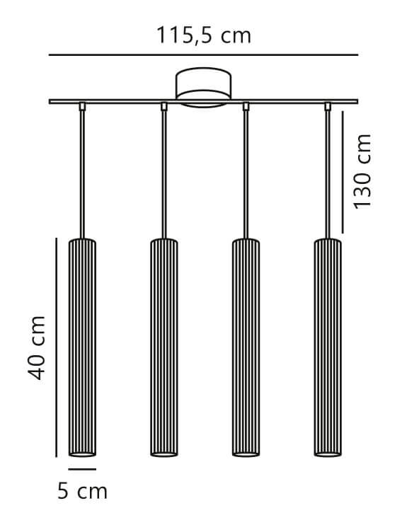 Wymiary: L115,5 cm, klosze: H40 x Ø5 cm