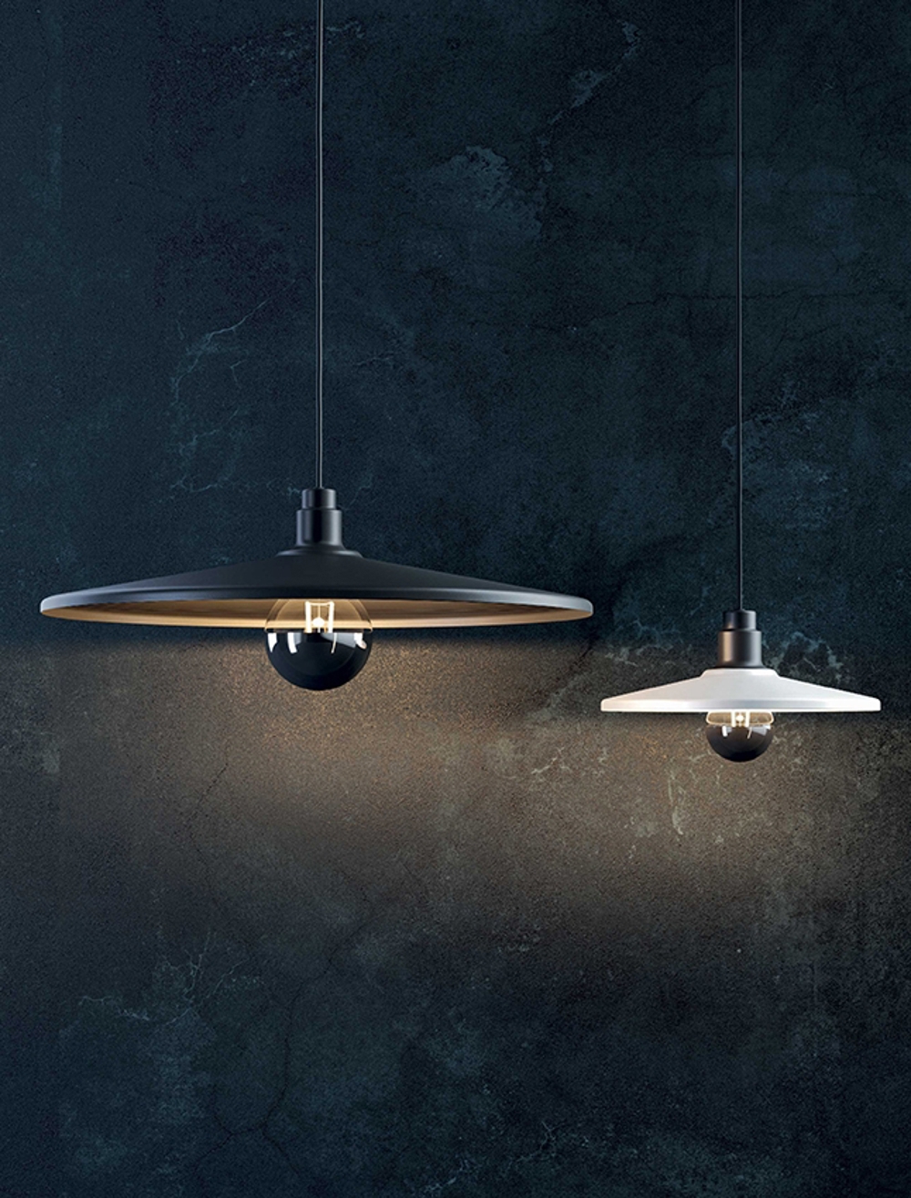 Seria Vinyl składa się z lampy ściennej/sufitowej i lampy wiszącej. Lampa wisząca Vinyl dostępna jest w dwóch rozmiarach i dwóch kolorach, co pozwala na wiele kombinacji.