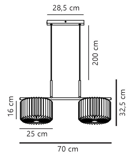 Wymiary: L70 x H32,5 cm, klosze: Ø25 cm
