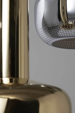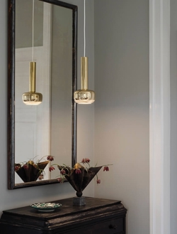 Lampa wisząca VL 56 wykonana jest z polerowanego, nieobrobionego mosiądzu, a także dostępna jest w chromie.