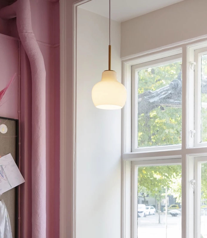 Louis Poulsen VL Ringkrone 1 pendel, mosiądz/błyszczący opal - zaprojektowany przez Vilhelma Lauritzena.