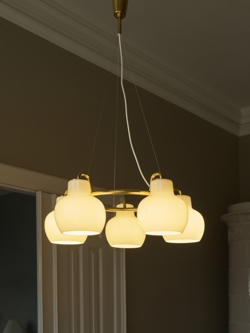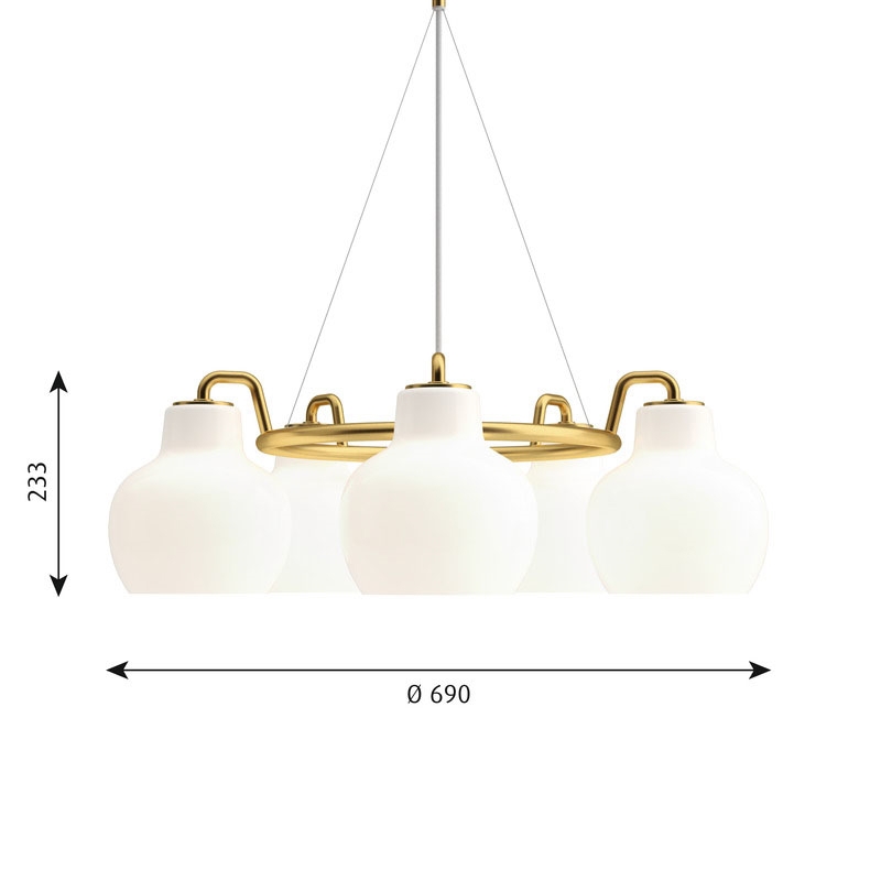 Louis Poulsen VL Ringkrone 5 pendel, mosiądz/błyszczący opal - zaprojektowany przez Vilhelma Lauritzena.