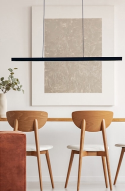 Długi pendel Volare z małymi otworami LED wzdłuż oprawy, dzięki smukłemu i eleganckiemu designowi, doskonale wpasuje się w wiele różnych wnętrz. Użyj pendla jako wyrafinowanego oświetlenia nad stołem jadalnym, stołem kuchennym lub stołem konferencyjnym i ciesz się ciepłym i ściemnialnym światłem z zintegrowanego źródła LED.