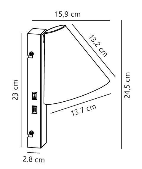 Wymiary: H24,5 x D15,9 cm, klosz: Ø13,7 x H13,2 cm