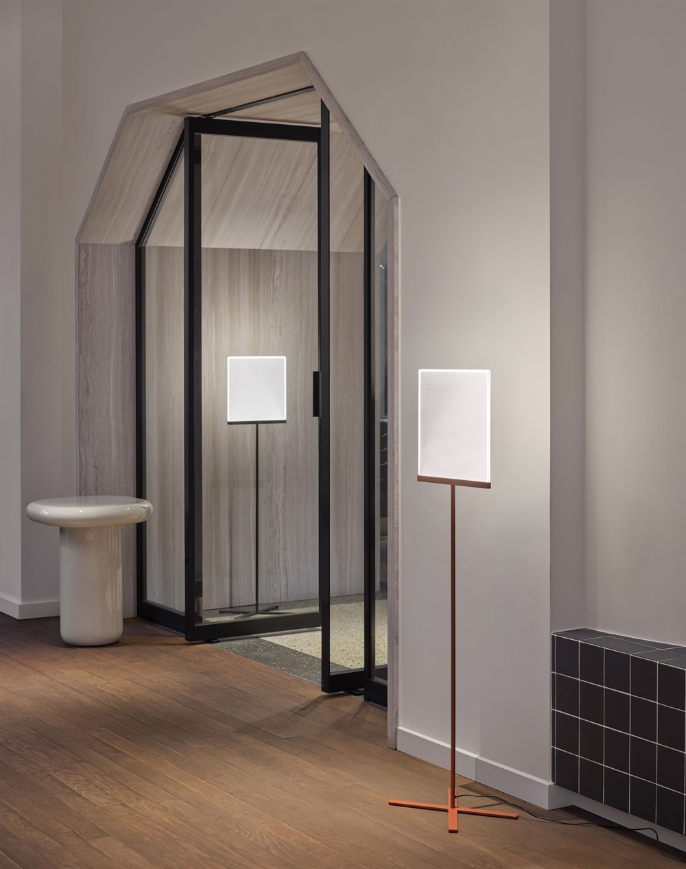 Xio to lampa podłogowa o smukłym designie z wąskim źródłem światła LED, które daje jasne i miękkie światło.