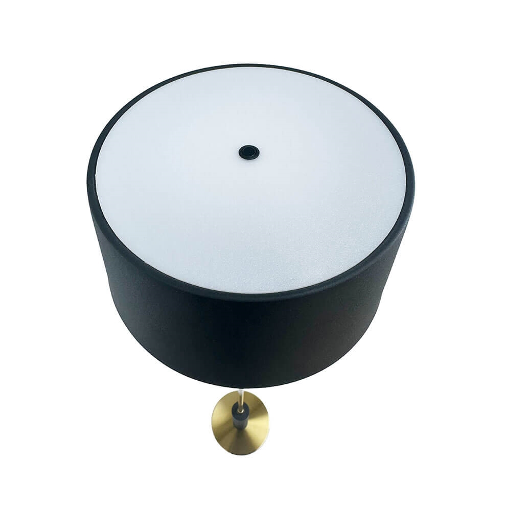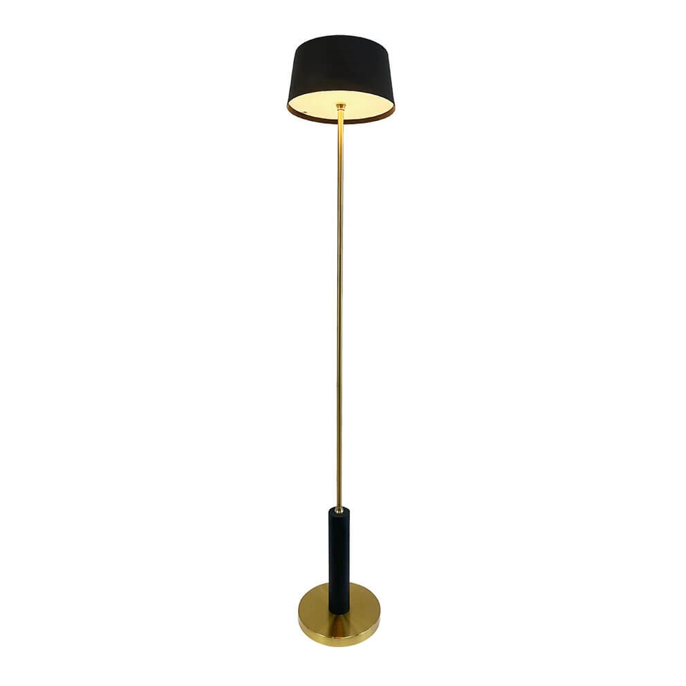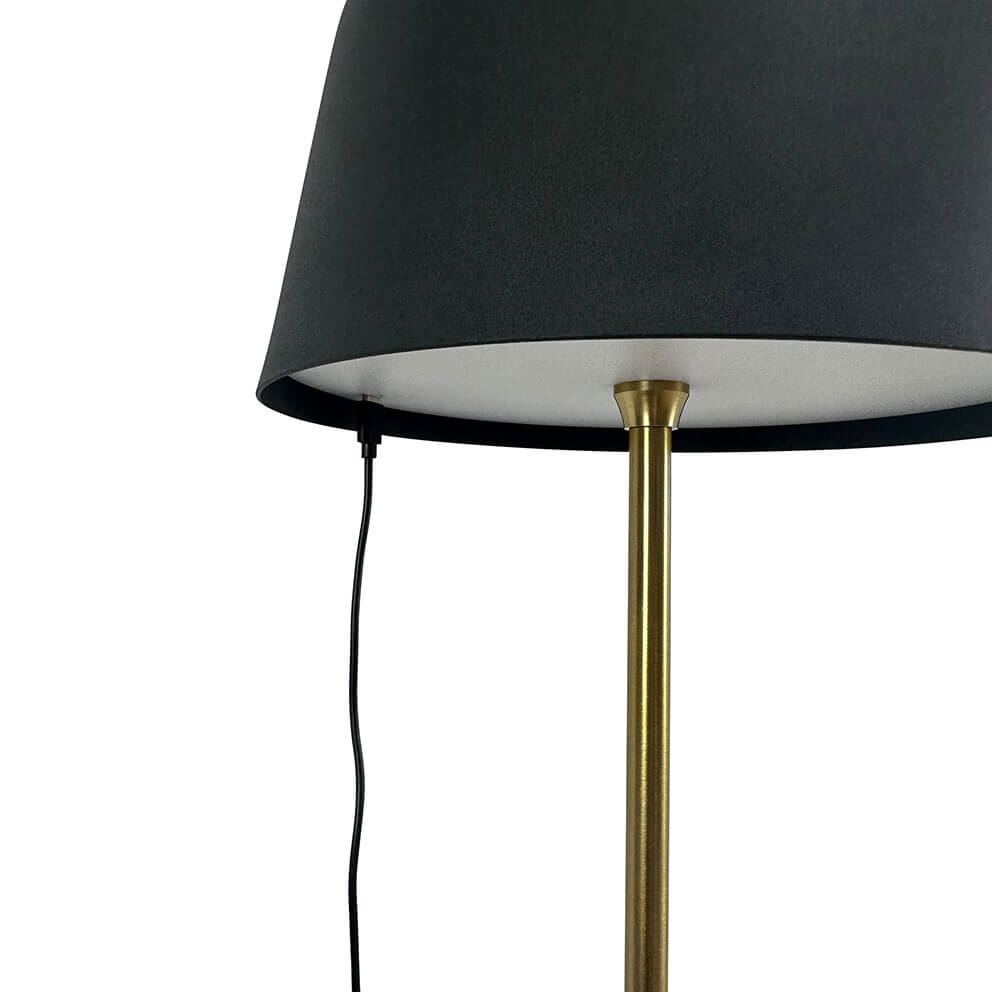 Przenośna lampa podłogowa Yoyo z eleganckim designem idealnie pasuje do miejsc z ograniczoną przestrzenią. Klosz lampy bateryjnej wykonany jest z czarnego szczotkowanego metalu, a podstawa i trzon lampy są z mosiądzu.