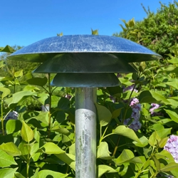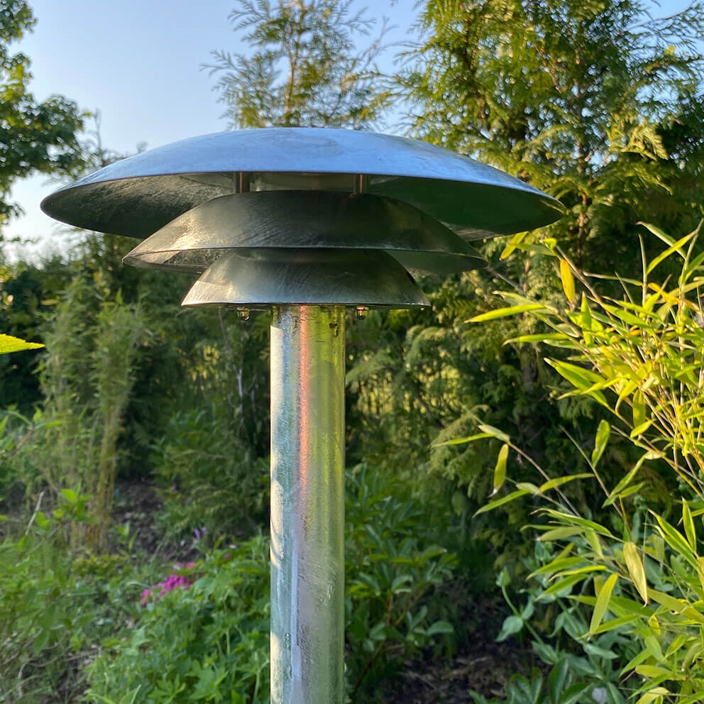 Słupek oświetleniowy DL25 z wykończeniem ze stali ocynkowanej pięknie rozświetla przestrzeń w ciemnych godzinach. Klosze wykonano ze stali ocynkowanej ogniowo, co nadaje lampie mocny i trwały design odpowiedni do nordyckiej pogody. Z czasem powierzchnia nabierze ciemniejszego odcienia.