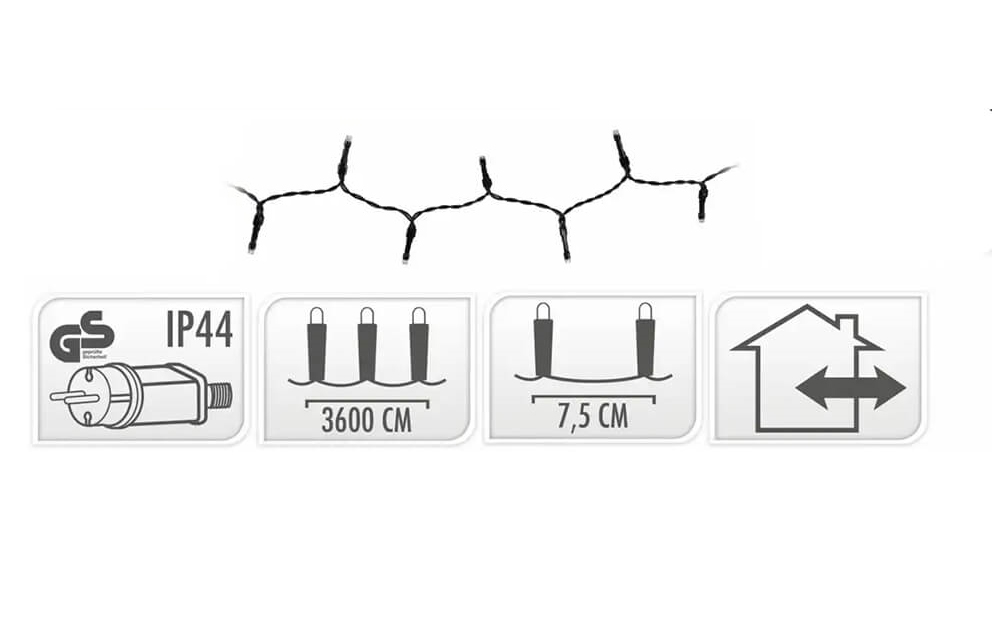Długość: 36 m łańcucha świetlnego + 3 m przewodu przed diodami LED